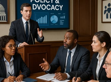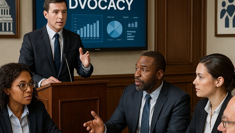 Engage with policymakers, offer legal and strategic support, and represent community interests in matters of public policy and civil discourse.